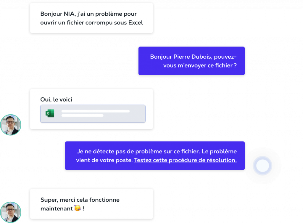NIA® guide vos collaborateurs et leur apporte une réponse instantanée, contextualisée dans l’entreprise et personnalisée selon leur niveau technique.